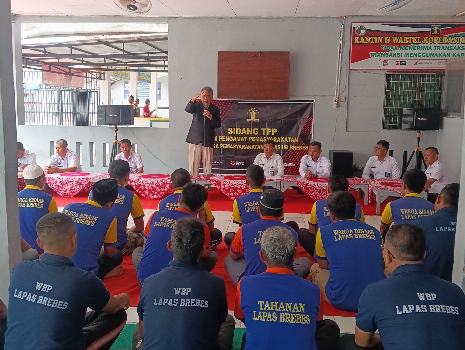 Brebes, Poskota.online – Sebanyak 38 Warga Binaan Lembaga Pemasyarakatan (Lapas) Kelas IIB Brebes, ikuti sidang Tim Pengamat Pemasyarakatan (TPP) di aula blok hunian Lapas Kelas IIB Brebes. Dalam kegiatan ini juga Warga Binaan menerima sosialisasi penguatan pembinaan ideologi Pancasila dari Ketua Pusat Kegiatan Belajar Mengajar (PKBM) Sakila Kerti Kota Tegal, Rabu (15/01).