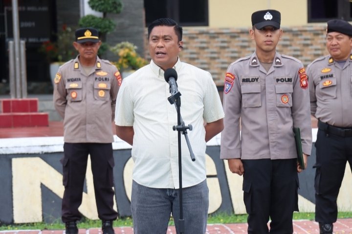 Polres Melawi Polda Kalbar Poskota Online – Kasat Reskrim Polres Melawi AKP Ambril, S.H., M.A.P saat apel pagi di halaman apel Bhayangkara, Selasa (6/1/26) pamit kepada seluruh personel Polres Melawi, ini di sampaikan AKP Ambril setelah TR mutasinya dan akan serah terima jabatan Kasat Reskrim pada Rabu, (7/1/26).