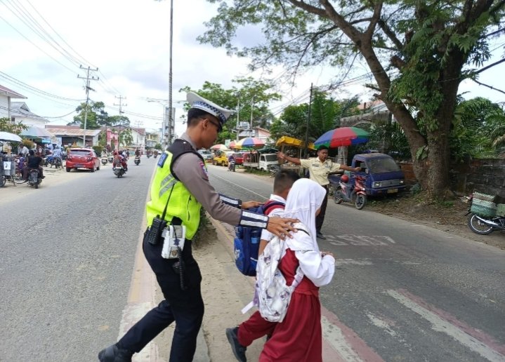 “Pada jam pulang sekolah, kami hadir memastikan kamseltibcar lancar menjadi prioritas utama,” terang AKP Pipit.