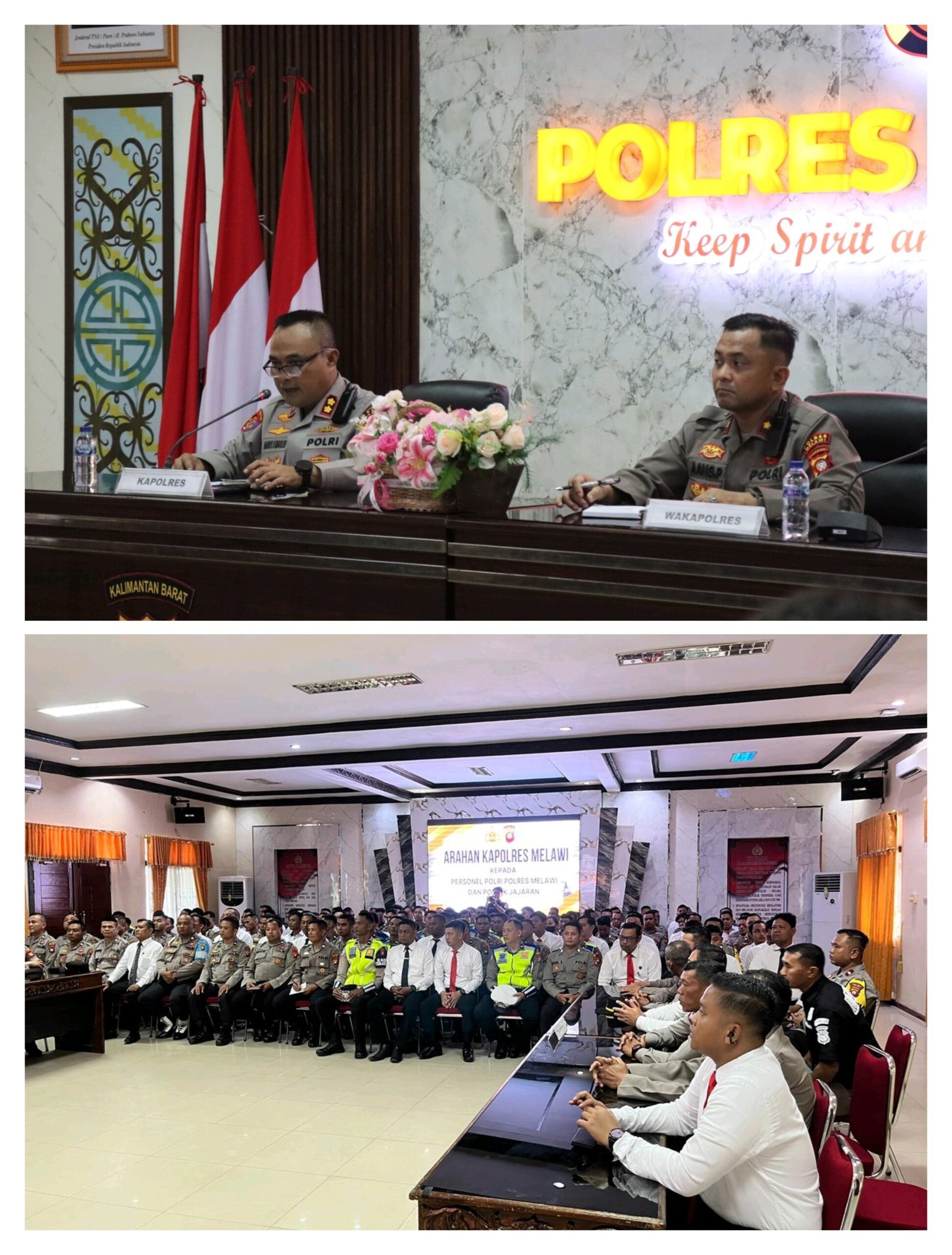 Polres Melawi Polda Kalbar Poskota Online– Kapolres Melawi Polda Kalbar AKBP Harris Batara Simbolon, S.I.K., S.H., M.Tr.Opsla memberikan arahan kepada personel Polres Melawi dan personel Polsek jajaran di Aula Tribrata, Senin (20/4/26).