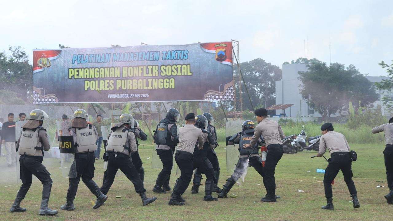 Poskota.online, Purbalingga –  Biro Operasi (Roops) Polda Jateng melaksanakan asistensi tentang Olah Taktis Pengamanan dan Penanganan Konflik Sosial atau Unjuk Rasa di Polres Purbalingga. Kegiatan dilaksanakan di dua lokasi, Selasa (27/5/2025).
