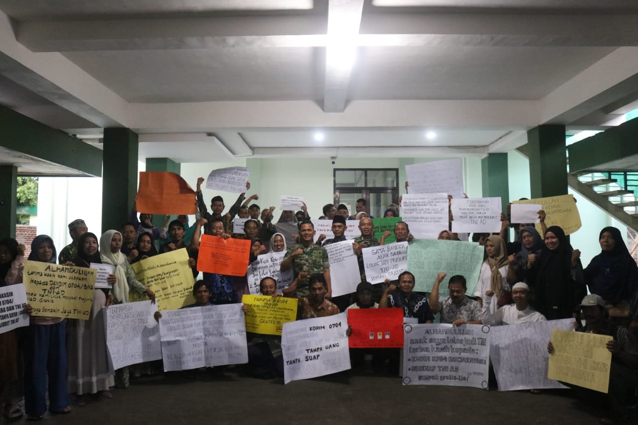 Banjarnegara, poskota.online – Sebanyak 50 warga masyarakat Kabupaten Banjarnegara, mengucapkan terima kasih kepada Kodim 0704/Banjarnegara atas kelolosan 38 putranya dari seleksi TNI AD tanpa mengelurkan biaya (Gratis).