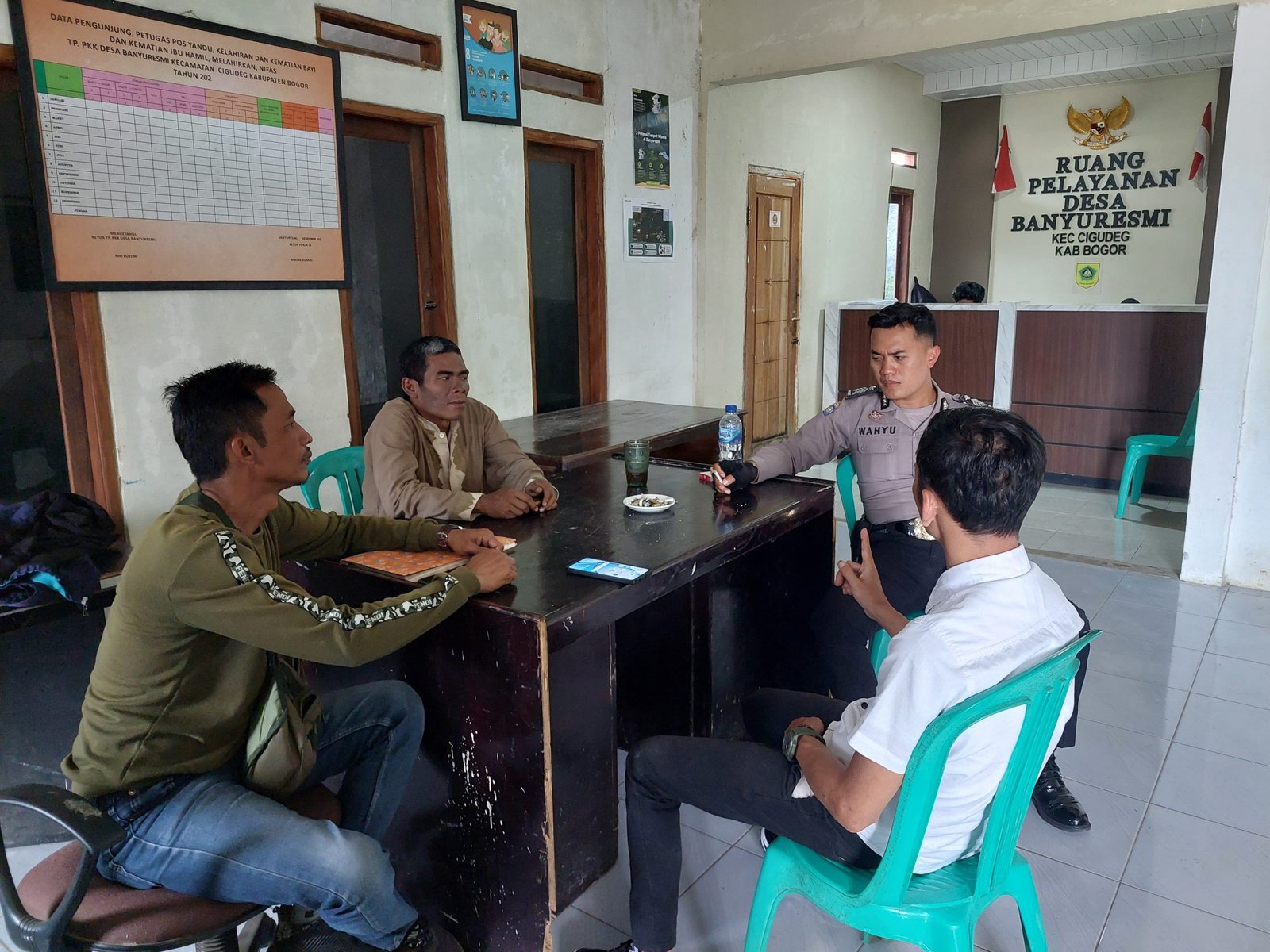 POLRES BOGOR,Poskota.Online-Untuk mencegah adanya gangguan kamtibmas di wilayah Hukum Polsek Cigudeg Polres Bogor Polda Jabar, Bhabinkamtibmas Desa Banyuresmi melaksanakan Sambang Warga agar meningkatkan hubungan dengan Pemerintah desa dan masyarakat Desa Banyuresmi Kec. Cigudeg Kab. Bogor