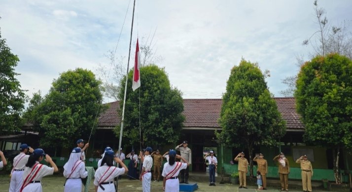 Kalbar Poskota Online– Ps. Kanit Binmas Polsek Belimbing, Bripka Yoseph Siwi, menjadi pembina upacara bendera di SMP Negeri 1 Belimbing, Kecamatan Belimbing, Kabupaten Melawi, Senin (5/10/25).