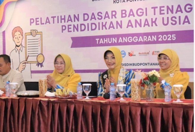 PONTIANAK Poskota Online– Bunda PAUD Kota Pontianak, Yanieta Arbiastutie Kamtono, mengajak seluruh tenaga pendidik PAUD untuk segera menerapkan ilmu yang telah mereka peroleh selama mengikuti Pelatihan Dasar Tenaga Pendidik PAUD Tahun 2025. Hal itu disampaikannya pada penutupan pelatihan yang digelar oleh Dinas Pendidikan dan Kebudayaan Kota Pontianak di Hotel Transera Pontianak, Jumat (28/11/2025).