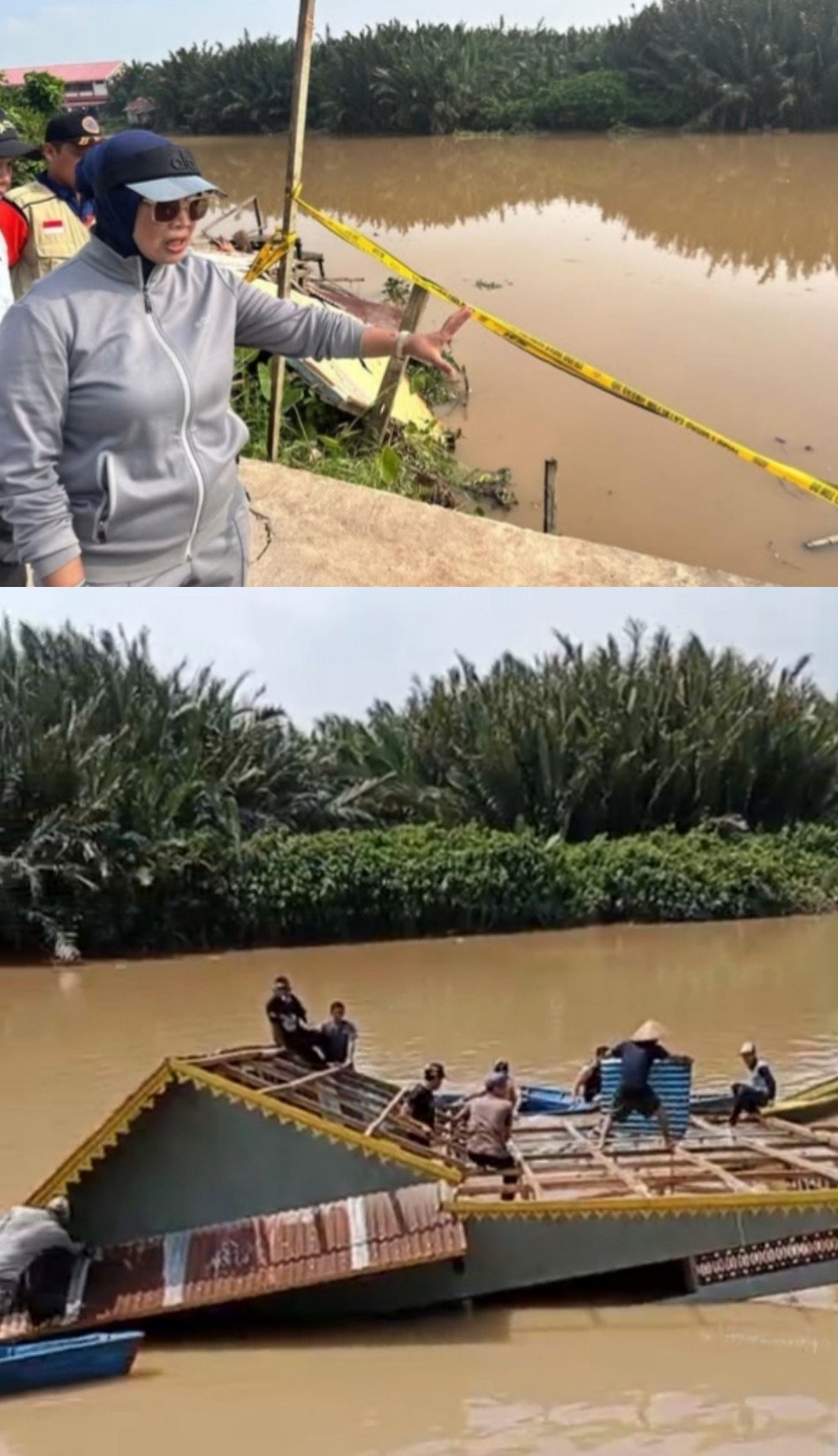 MEMPAWAH Kalbar Poskota Online-Bupati Mempawah Erlina Meninjau Langsung Lokasi rumah Anwar ambruk dan hanyut ke sungai akibat erosi di Rt 001 Rw 001, Dusun Makmur desa antibar Kecamatan Mempawah Timur Minggu 27 /7/2025.