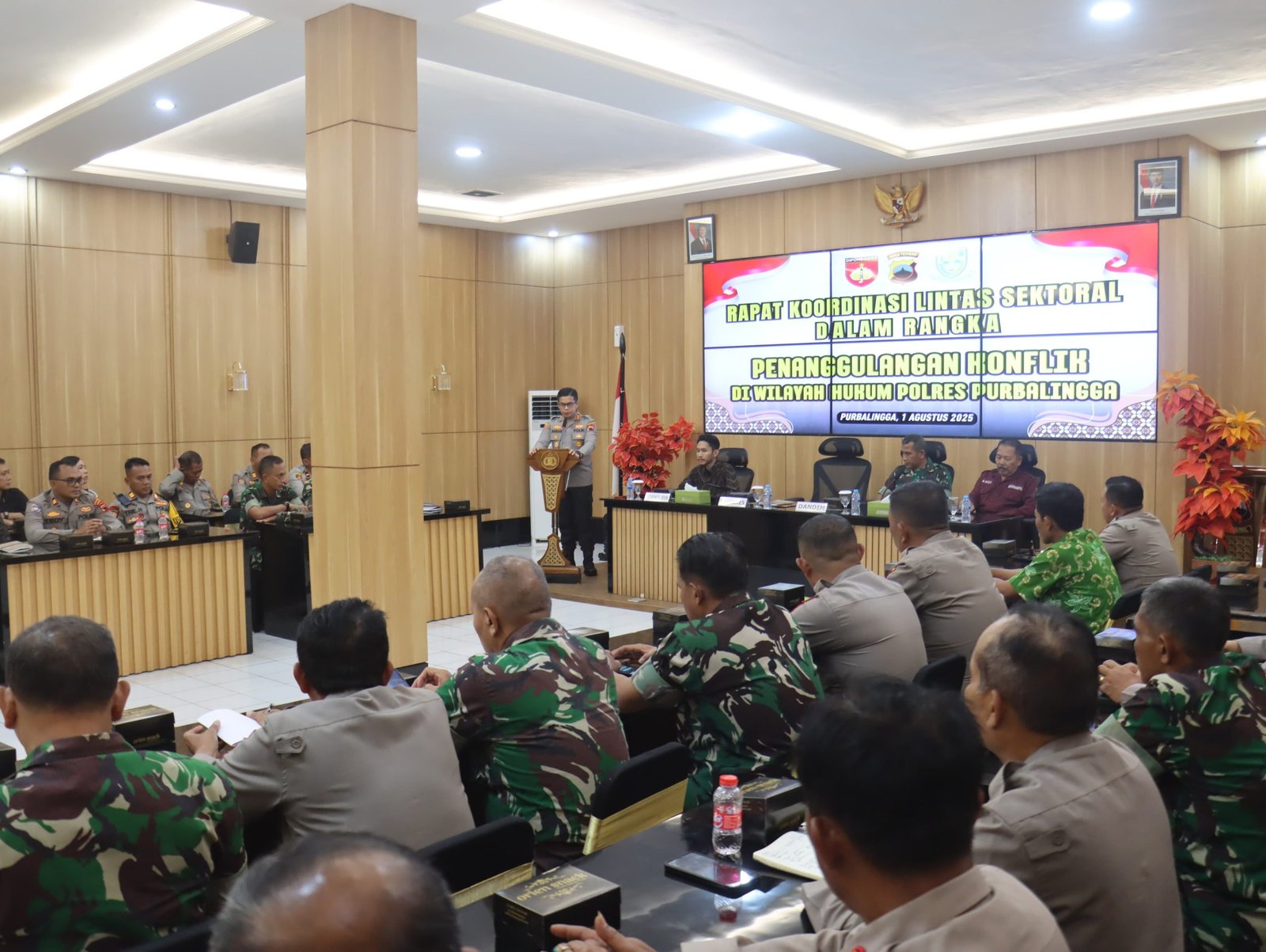Poskota.online, Purbalingga – Polres Purbalingga menggelar rapat koordinasi (Rakor) lintas sektoral dalam rangka Penanggulangan Konflik di wilayah hukum Polres Purbalingga. Rapat dilaksanakan di Aula Wicaksana Laghawa Mapolres Purbalingga, Jumat (1/8/2025) siang.