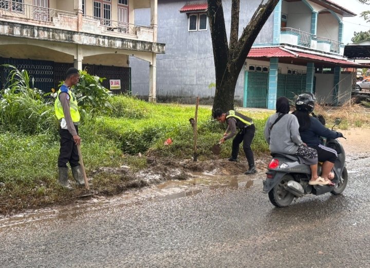 Polres Melawi Polda Kalbar Poskota Online– Satuan Lalu Lintas (Satlantas) Polres Melawi melakukan aksi cepat dengan membersihkan dan membuat saluran air di sejumlah ruas jalan yang kerap mengalami genangan. Selasa (09/12). Langkah ini dilakukan sebagai upaya pencegahan potensi terjadinya kecelakaan lalu lintas (laka lantas), terutama saat curah hujan meningkat.