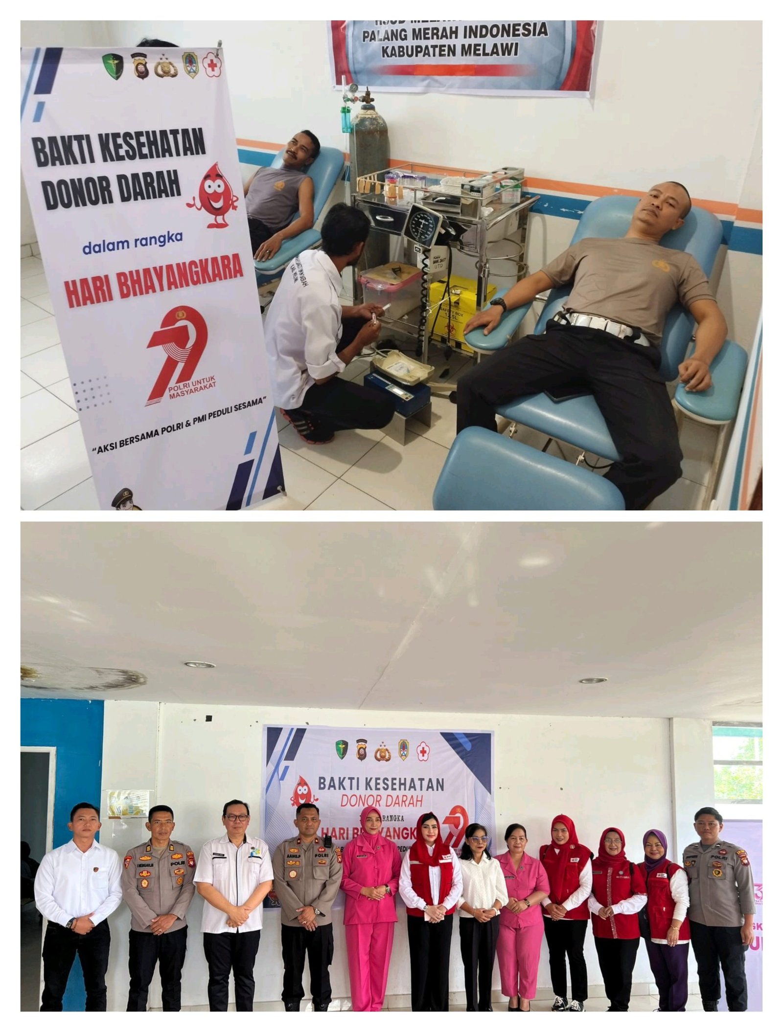 Kegiatan donor darah ini diikuti oleh personel Polres Melawi, Bhayangkari, serta masyarakat umum yang turut berpartisipasi dengan semangat kebersamaan.