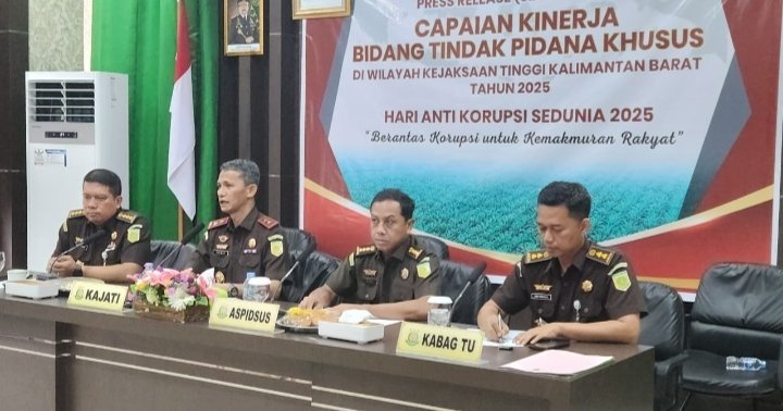 Pontianak Poskota Online – Dalam rangka memperingati Hari Anti Korupsi Sedunia (Hakordia) Tahun 2025, Kejaksaan Tinggi Kalimantan Barat memaparkan capaian kinerja penanganan perkara Tindak Pidana Korupsi oleh Kepala Kejaksaan Tinggi Kalimantan Barat Dr. Emilwan Ridwan, Selasa (09/12/2025) bertempat di Ruang Vidcom Lantai 4 Kejaksaan Tinggi Kalimantan Barat.