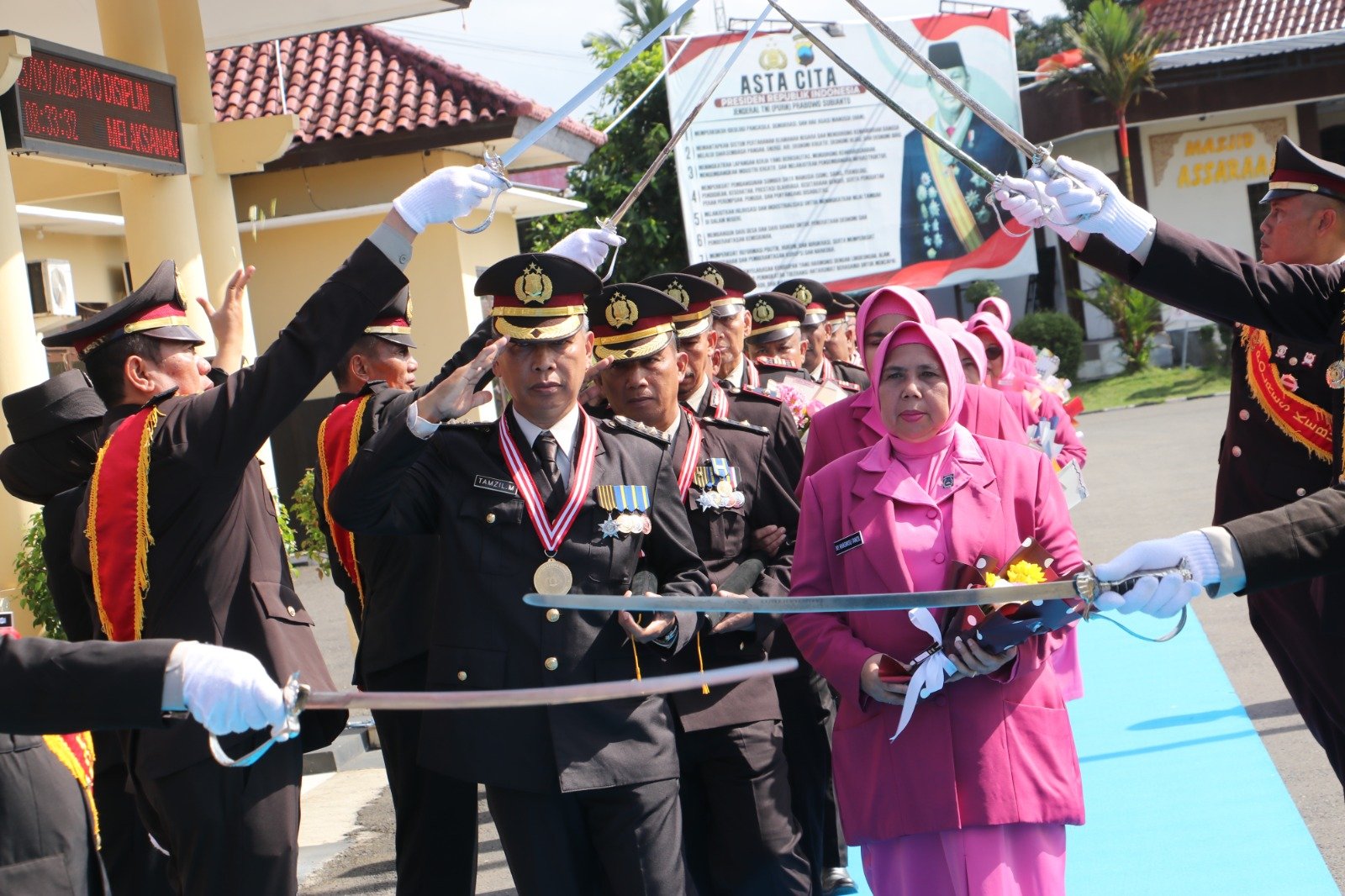Upacara berlangsung dengan penuh kekhidmatan. Personel Polres Kebumen membentuk barisan gerbang kehormatan, mengantar para wisudawan meninggalkan Mapolres dengan suasana haru.