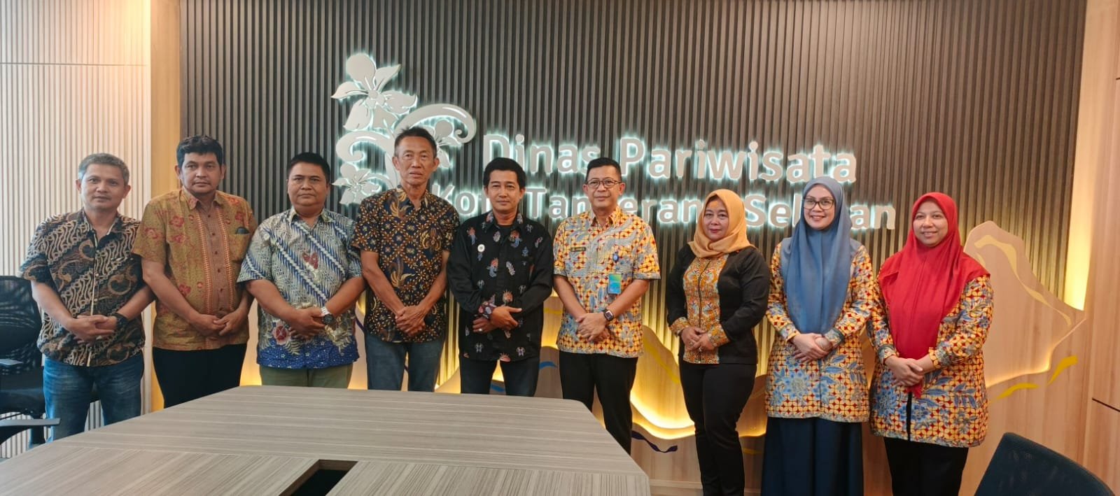 Pertemuan berlangsung di lantai 5 Gedung 1 Kantor Pemerintahan Kota Tangsel, dan disambut hangat oleh Sekretaris Dinas Pariwisata Kota Tangsel, Irfan Santoso, S.IP., M.M., beserta jajaran staf dinas.