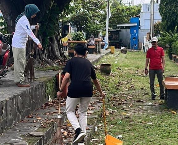 Terlihat suasana penuh keakraban antar sesama pengabdi negara dari Dinsos dan juga semangat mereka untuk mewujudkan Taman Patih Sampun bersih .