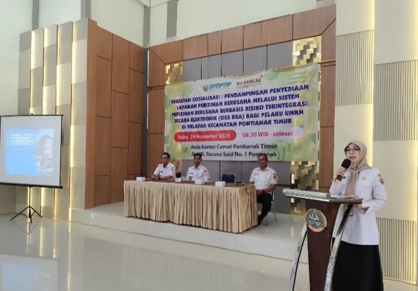 “Program jemput layanan ini menjadi momentum untuk meningkatkan kinerja dan daya saing usaha, demi mewujudkan perekonomian yang inklusif, produktif, kreatif, dan inovatif,” ujarnya usai membuka Sosialisasi dan Pendampingan Penyediaan Layanan Perizinan Berusaha Melalui OSS-RBA bagi Pelaku UMKM di Aula Kantor Camat Pontianak Timur, Rabu (26/11/2025).
