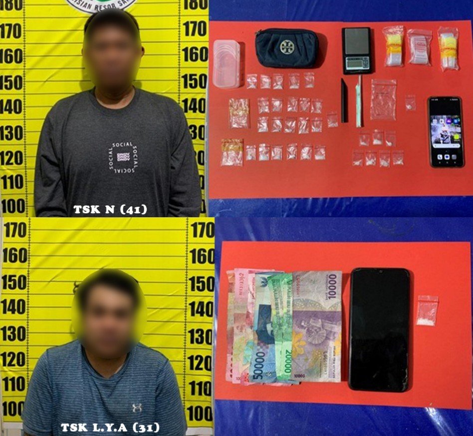 Dua orang pria berinisial L.Y.A. (31) dan N. (41) diamankan pada Senin malam, 9 Juni 2025, dalam dua lokasi berbeda dengan total barang bukti sebanyak 31 paket diduga sabu.