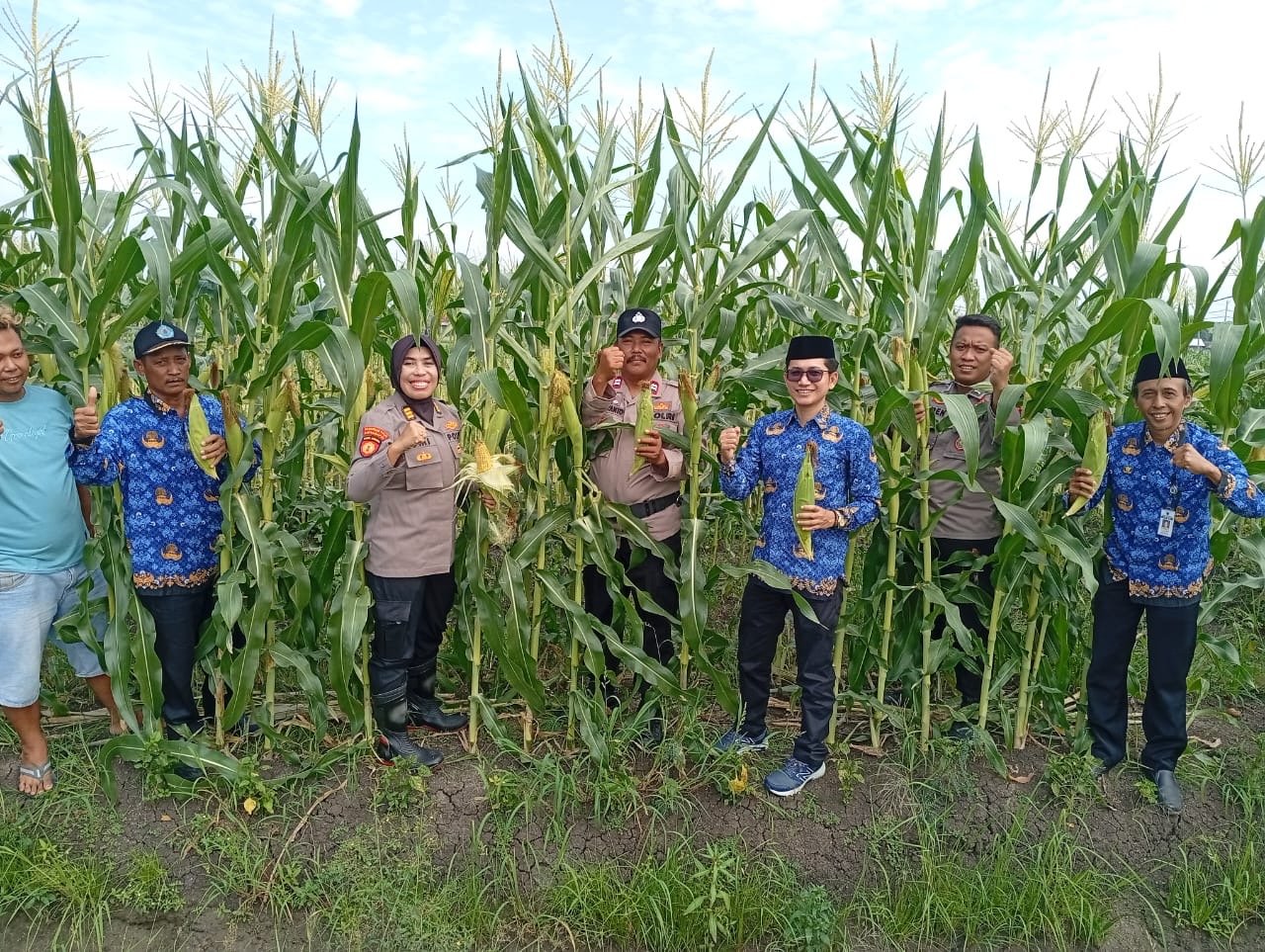 “Kami turut serta dalam panen raya ini bersama Muspika, Pemdes, dan penyuluh pertanian,” ujar Kapolsek.