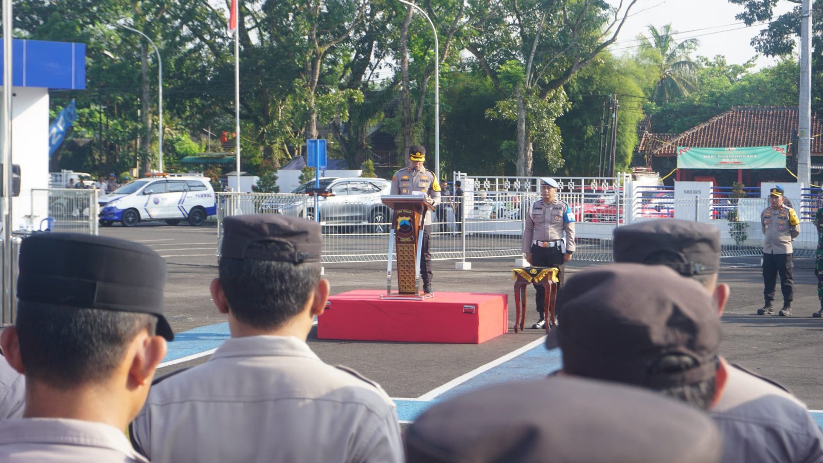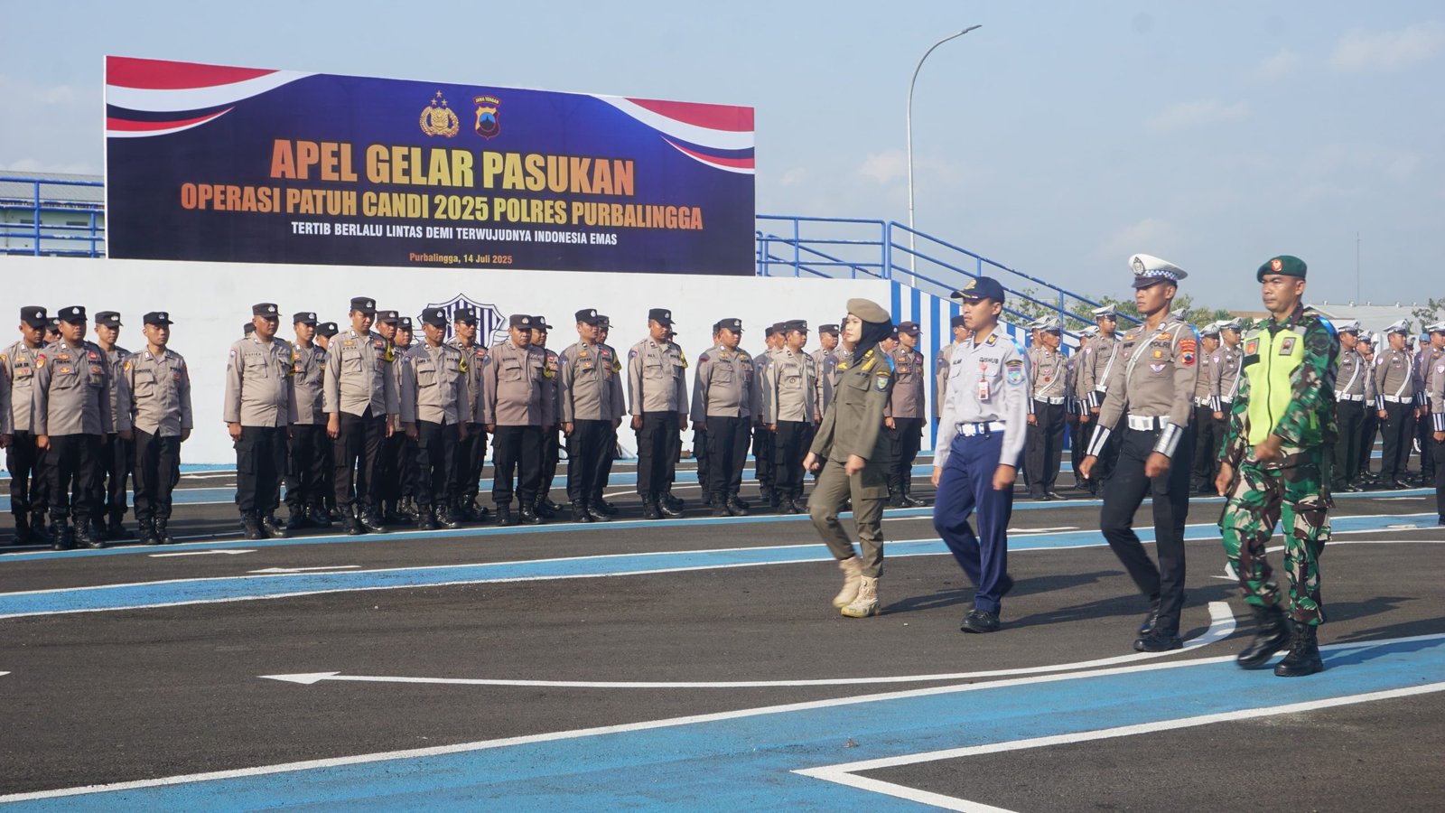 Apel dipimpin Kapolres Purbalingga AKBP Achmad Akbar dihadiri pimpinan stakeholder terkait. Peserta apel adalah personel Poles Purbalingga, TNI, Satuan Polisi Pamong Praja dan Dinas Perhubungan.