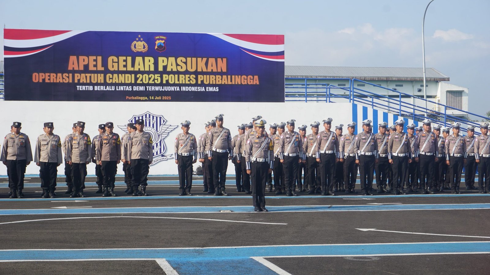 POSKOTA.ONLINE, PURBALINGGA – Polres Purbalingga menggelar Apel Gelar Pasukan Operasi Patuh Candi 2025 di halaman Satpas Prototipe, Senin (14/7/2025) pagi. Apel menandai dimulainya Operasi Patuh Candi 2025 di wilayah hukum Polres Purbalingga.
