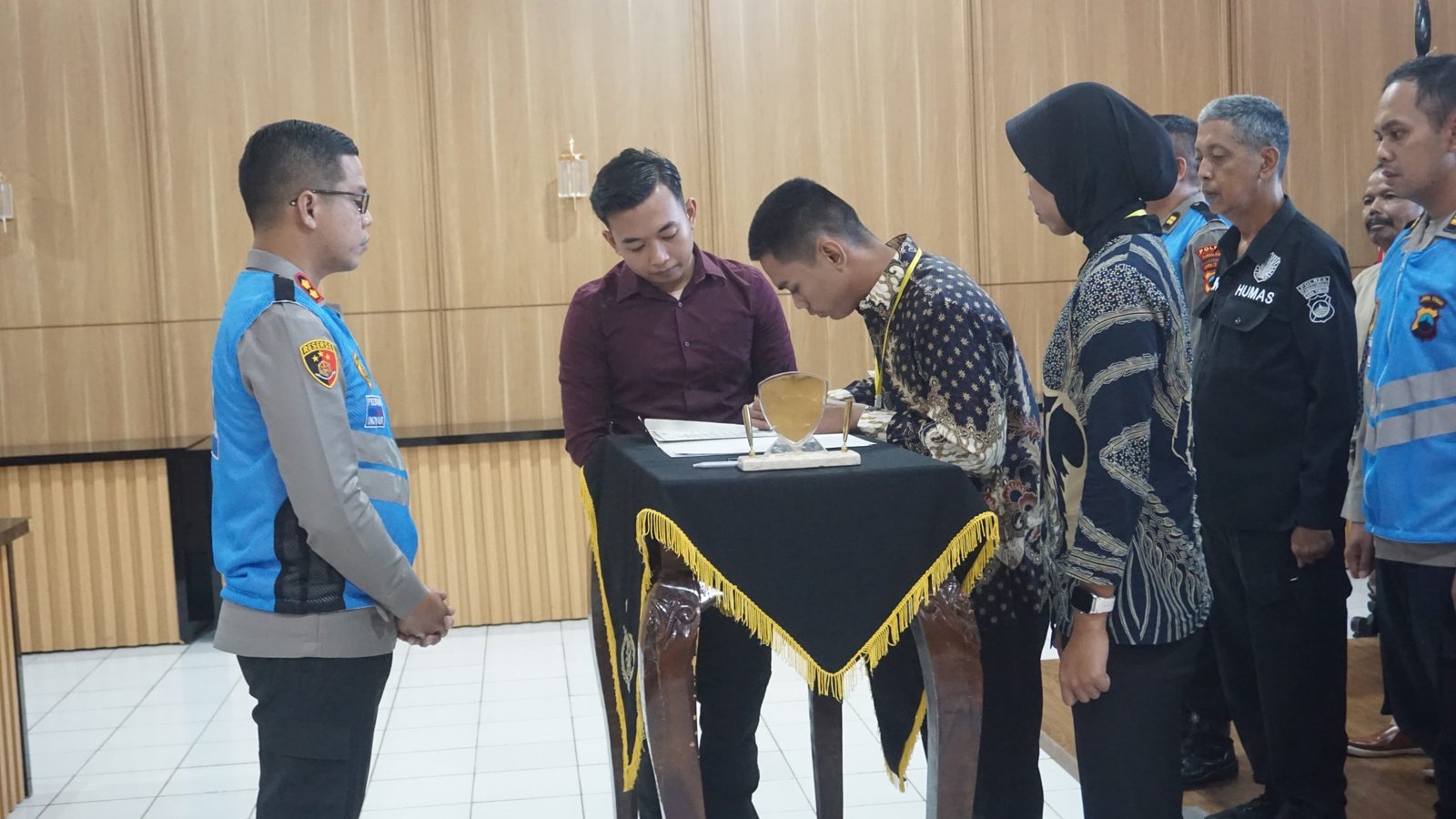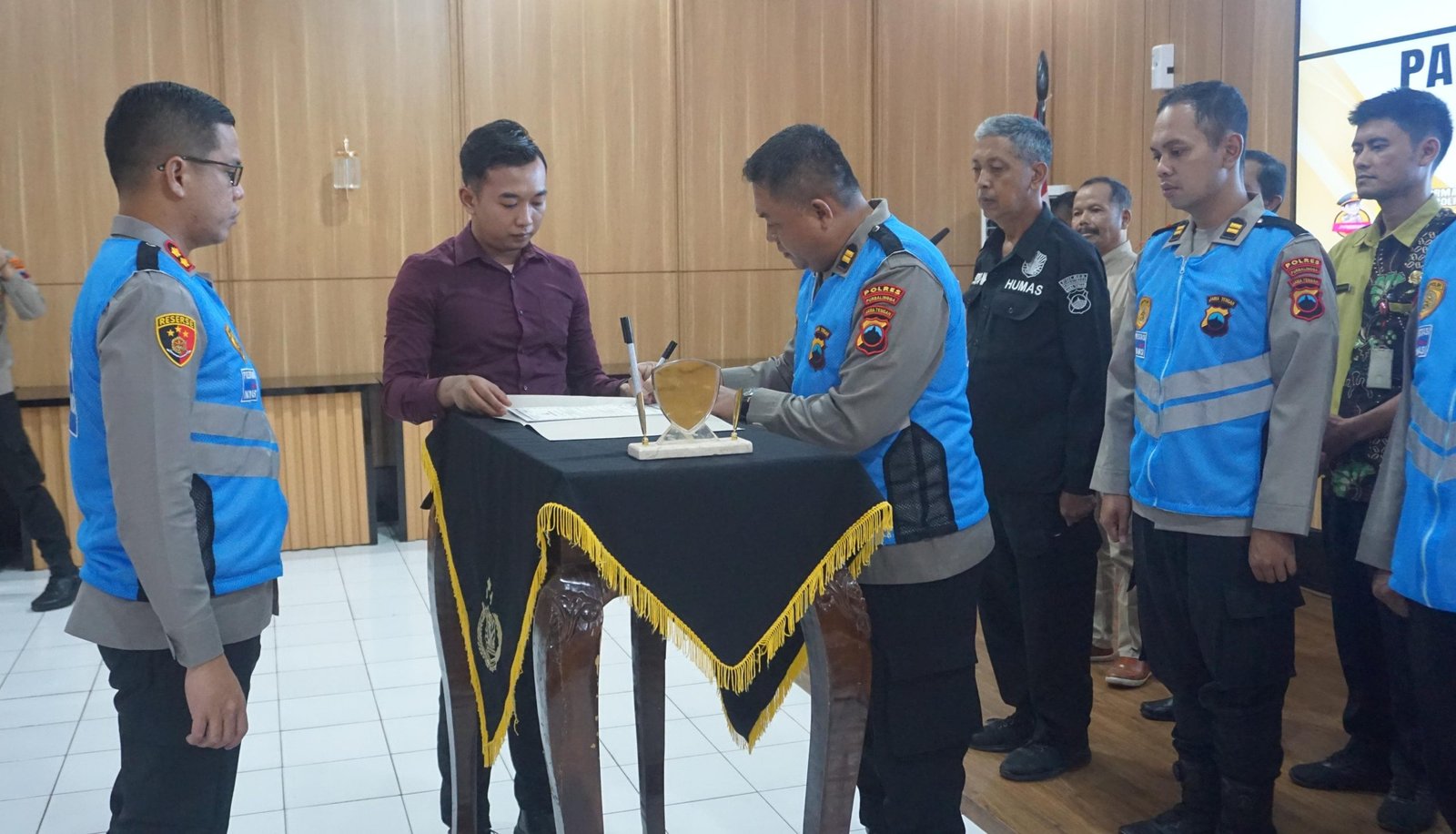 Terakhir dilaksanakan penandatanganan pakta integritas oleh Kapolres Purbalingga dan seluruh panitia, pengawas dan perwakilan orang tua serta calon siswa.