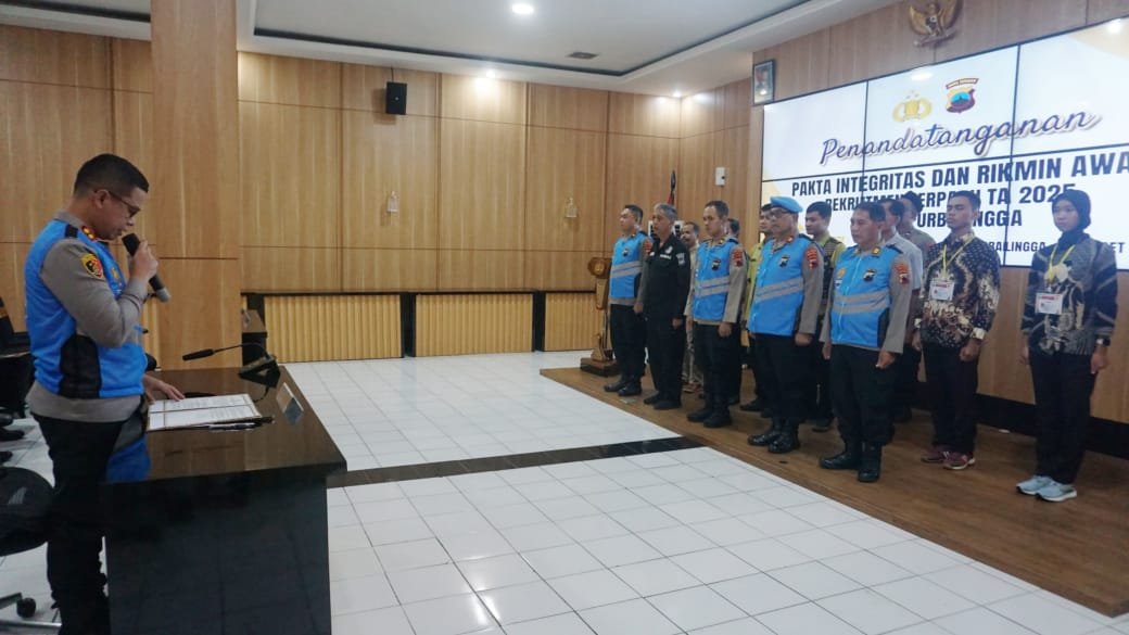 PurbaIingga, Poskota.online –  Polres Purbalingga menggelar pengambilan sumpah dan penandatanganan pakta integritas penerimaan Polri tahun anggaran (TA) 2025. Kegiatan digelar di Aula Wicaksana Laghawa Mapolres Purbalingga, Jumat (7/3/2025).