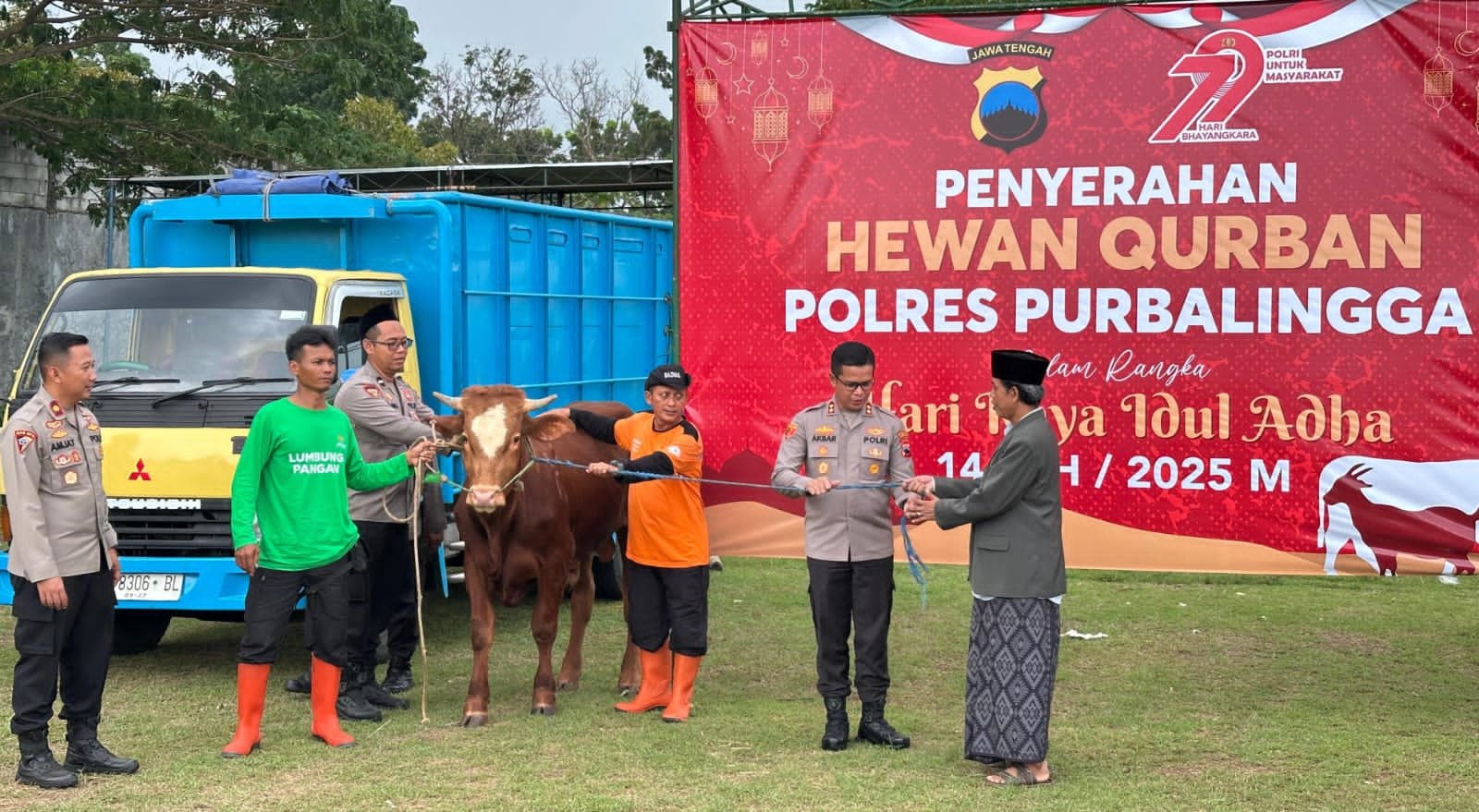 Kapolres Purbalingga AKBP Achmad Akbar mengatakan kami menyelenggarakan salat Iduladha dan pemotongan hewan kurban bersama masyarakat dalam rangka Iduladha 1446 Hijriah.