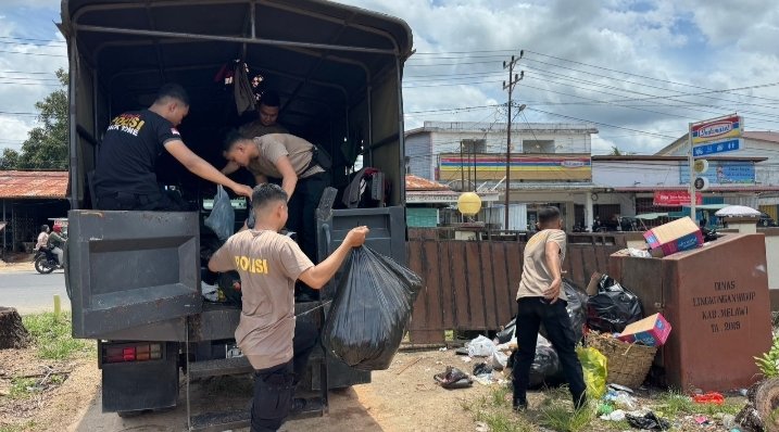 Gerak Cepat Polres Melawi Sapu Bersih Sampah di Jembatan Melawi II