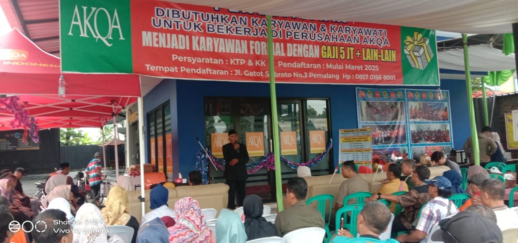 Pemalang, Poskota.online – Mendadak ramai masyarakat berkumpul di depan kantor AKQA – ID Advertising yang beralamatkan di Jalan Gatot Subroto No.3 Pemalang Jawa Tengah dekat dengan Perempatan Lampu Merah Sirandu .