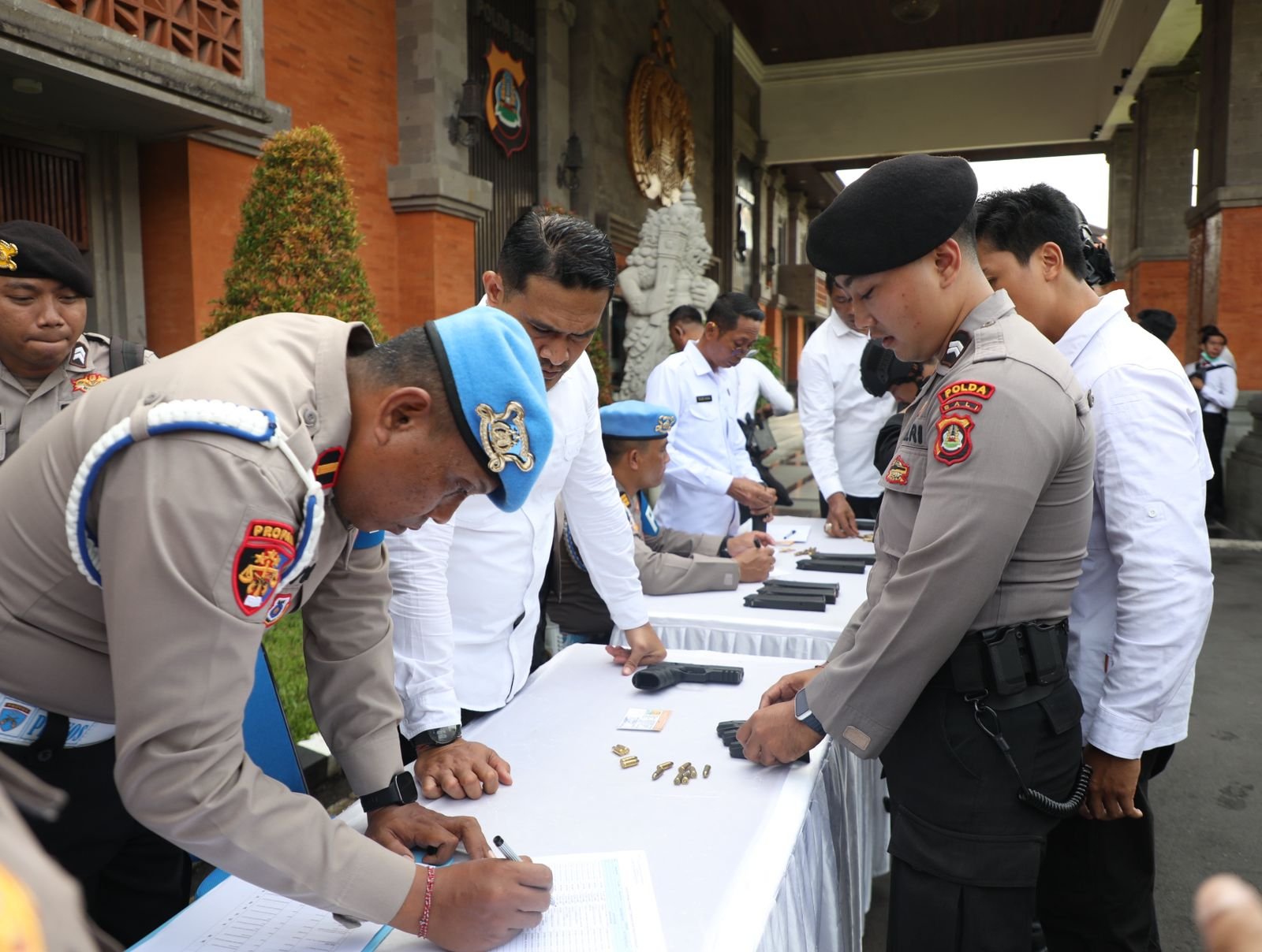 Dalam kegiatan ini, Personel Bid Propam Polda Bali melakukan pemeriksaan kelengkapan administrasi, kondisi fisik senjata api, serta memastikan bahwa personel yang memegang senjata api memenuhi persyaratan yang telah ditetapkan.