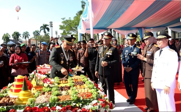 Pangdam Jamallulael memberikan potongan tumpeng kepada Kapolda Kalbar. Danlantamal XII Pontianak memberikan potongan kue ulang tahun kepada Wakapolda Kalbar, sedangkan Danlanud Supadio memberikan potongan kue kepada Irwasda Polda Kalbar.
