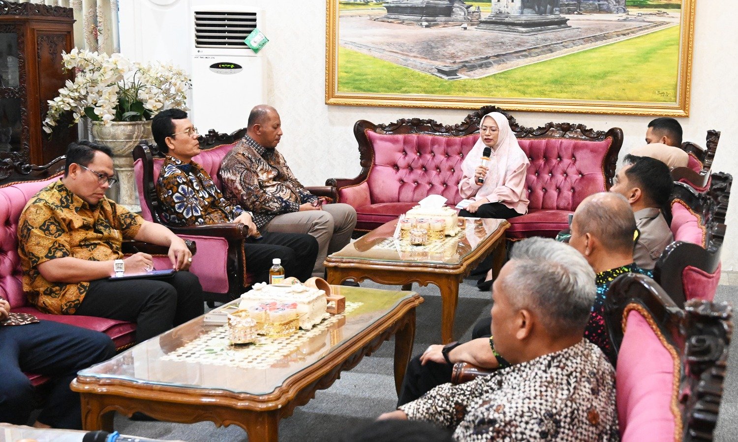 Direktur Utama PT Geo Dipa Energi (Persero) bersama Direksi Geo Dipa Energi bersilaturahmi dengan Bupati dan Jajaran Forkompimda dan OPT terkait di lingkungan pemkab Banjarnegara dj rumah dinas bupati pada Jum'at Sore (21/3/2025), Kunjungan tersebut dalam rangka konsolidasi berkaitan dengan pengembangan Geo Dipa Unit Dieng.(foto/ahr)