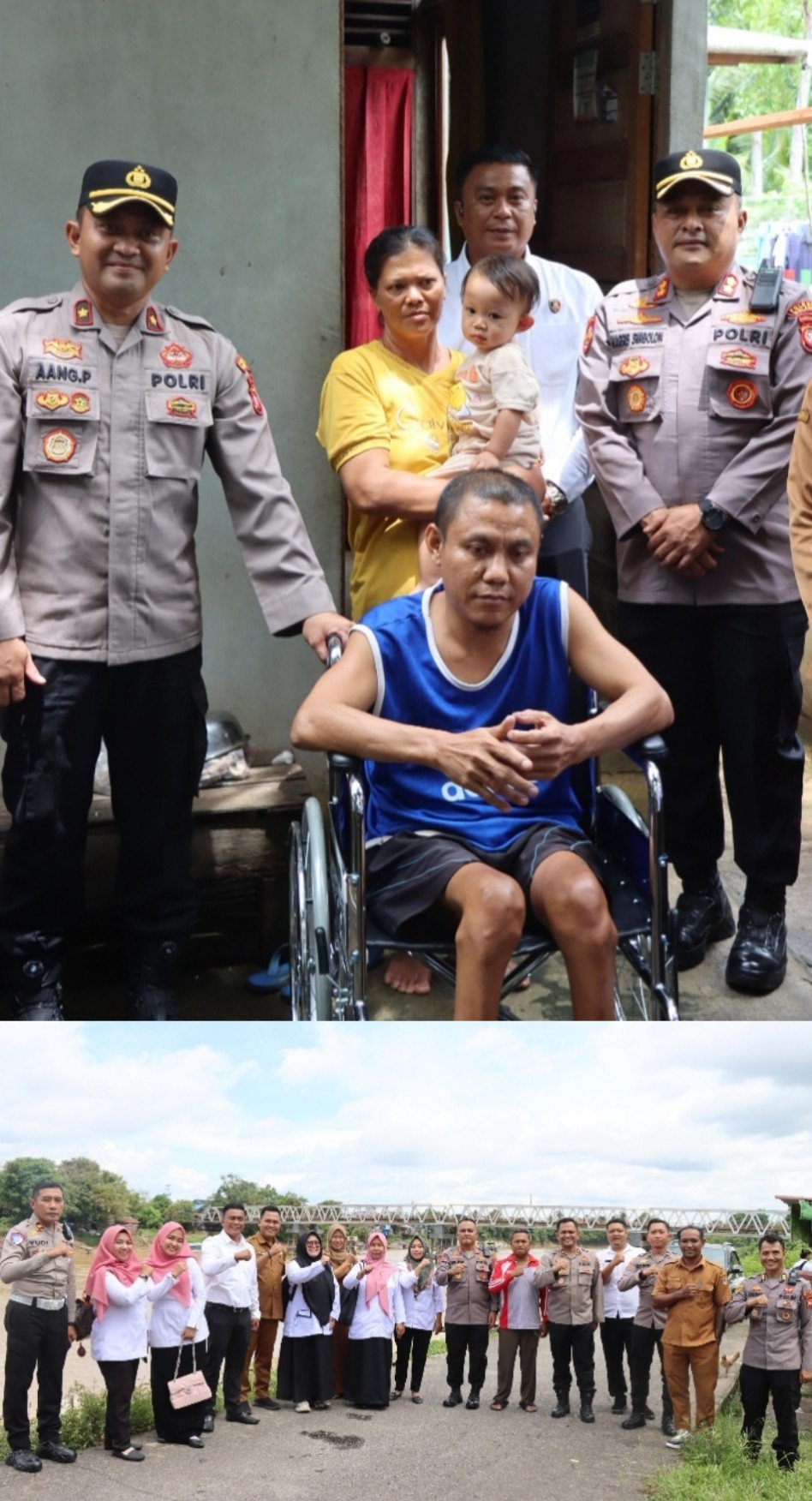 “Hari ini di dampingi Waka Polres Melawi Kompol Aang Permana, S.I.P., S.H., M.A.P, Kabag Log AKP Oding Ardi, S.Sos, Kasat Reskrim AKP Ambril, S.H., M.A.P., C.P.M, Kasat Lantas Iptu J.E.Kusuma, S.A.P., M.H, perwakilan Dinas Sosial dan pemerintah desa Sidomulyo dengan niat membantu hari ini kami memberikan bantuan 2 (dua) kursi roda yang sangat di butuhkan oleh saudara Hendri dan saudara Hanifan. Kami menamakan program “Kursi Roda Untuk Menyadikku,” ujar Kapolres Melawi usai pemberian bantuan.