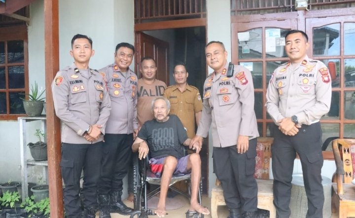 “Kami dari Polres Melawi bermaksud memberikan kursi roda, semoga bapak selalu sehat,” ujar Kapolres Melawi berdialog.