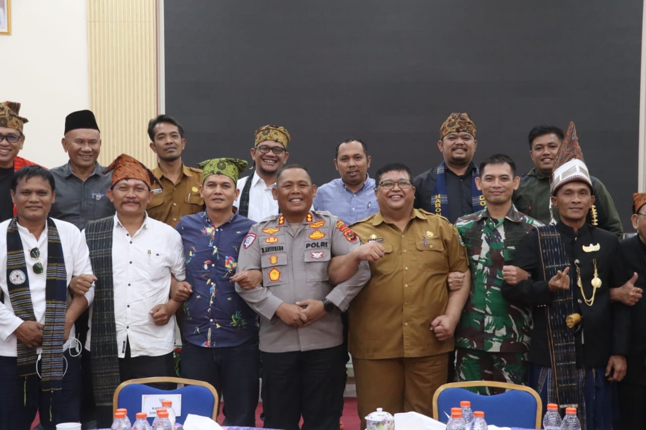 Simalungun, Poskota.Online – Kapolres Simalungun AKBP Marganda Aritonang, S.H., S.I.K., M.M., menghadiri Rapat Koordinasi percepatan penyelesaian persoalan tanah PT TPL dengan masyarakat Lamtoras Nagori Sihaporas di Balei Harungguan Djabanten Damanik, Kantor Bupati Simalungun, Pamatang Raya, Selasa (14/10/2025). Rakor yang berlangsung pukul 09.00 WIB hingga 13.30 WIB ini digelar dalam rangka upaya pelestarian dan perwujudan warisan adat di Kabupaten Simalungun.
