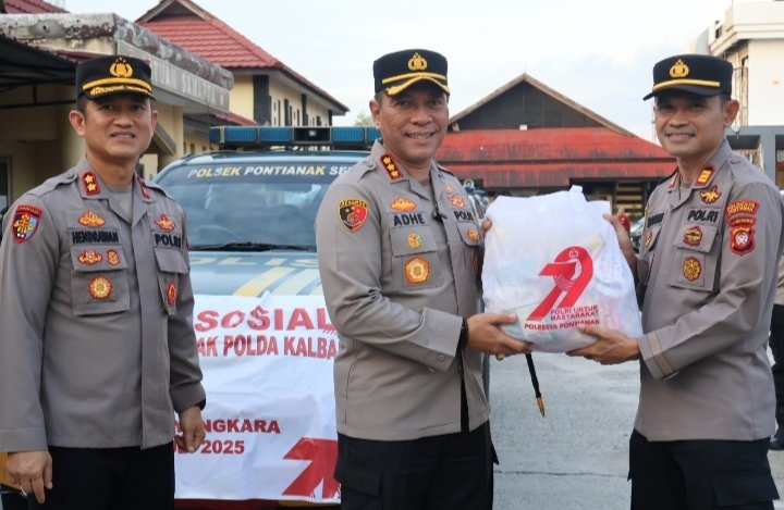 POLRESTA PONTIANAK,Polda Kalbar Poskota Online– Menyambut Hari Bhayangkara ke-79 Tahun 2025, Kepolisian Resor Kota (Polresta) Pontianak kembali menggelar kegiatan bakti sosial dengan menyalurkan sebanyak 1.000 paket sembako yang akan didistribusikan ke Polsek Jajaran. Bantuan ini nantinya akan diserahkan kepada para Purnawirawan Polri, Warakawuri, dan masyarakat kurang mampu di wilayah hukum Polresta Pontianak.Jum’at (20/06/2025)