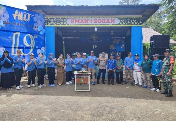 Polsek Sokan Polres Melawi Polda Kalbar Poskota Online – Ulang Tahun SMA N 1 Sokan ke – 19 diisi kegiatan yang sederhana namun meriah dengan senam bersama, jalan sehat, potong tumpeng dan pembagian door prize untuk pelajar dan undangan di halaman sekolah SMA N 1 Sokan, Senin (17/11/25).