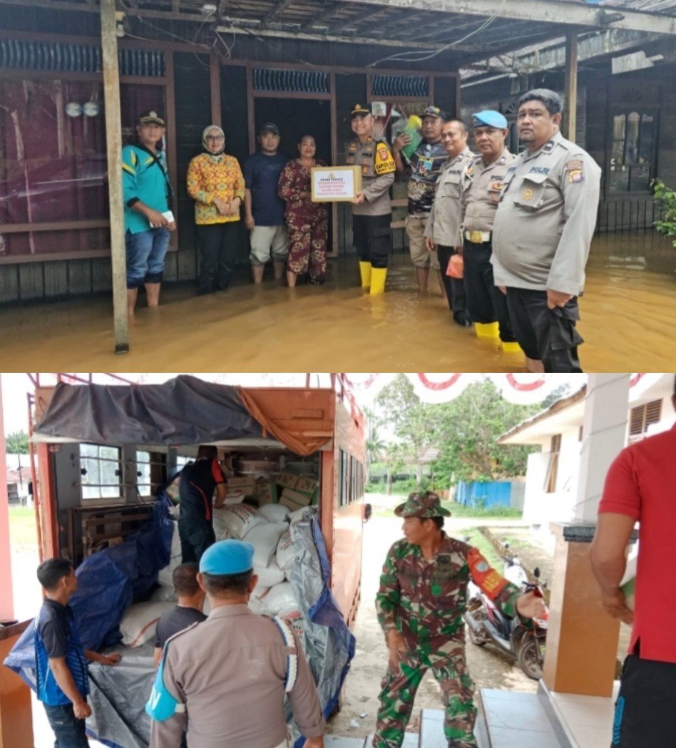 Menanggapi situasi darurat ini, personel gabungan dari TNI, Polsek Manis Mata, dan BPBD (Badan Penanggulangan Bencana Daerah) Kabupaten Ketapang segera bergerak cepat. Dengan menggunakan truk dan perahu karet, tim gabungan menembus genangan air untuk menyalurkan bantuan sembako untuk warga yang masih bertahan di wilayah terdampak banjir.