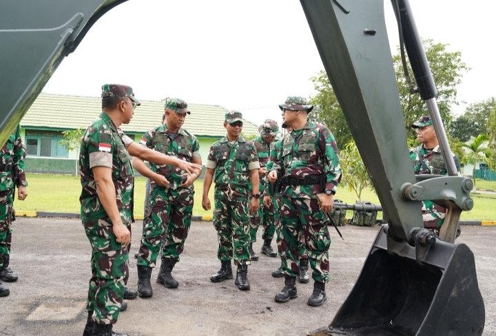Asisten Operasi Kasdam XII/Tanjungpura, Kolonel Inf Wahyu Ramadhanus Suryawan, S.Sos., M.M.S., yang memimpin langsung pemeriksaan tersebut, melakukan pengecekan menyeluruh terhadap kesiapan personel, perlengkapan perorangan, hingga alat berat yang akan dikerahkan.