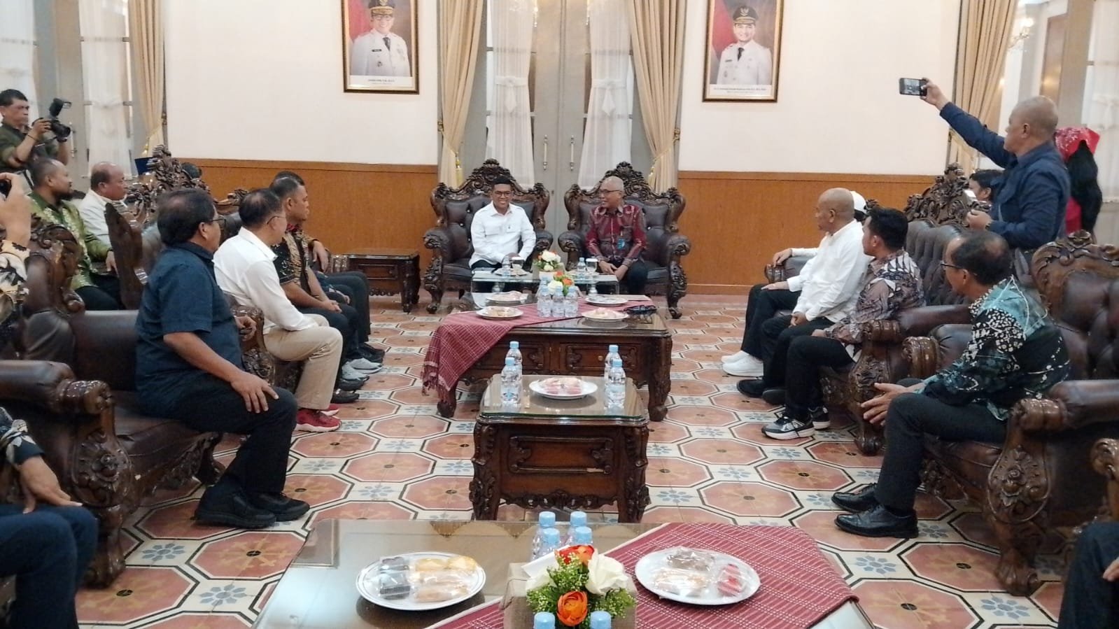 “Alhamdulillah, hari ini saya mendapat tamu kehormatan dari PWI Pusat. Setelah beberapa tahun, akhirnya PWI bisa kembali bersatu. Ke depan, saya tidak lagi bingung menerima audiensi karena PWI sudah bersatu. Kami siap berdiskusi dan berkolaborasi untuk mendukung aktivitas masing-masing,” ujarnya.