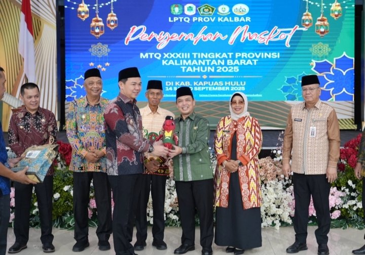 PONTIANAK Poskota Online Gubernur Kalimantan Barat, Ria Norsan, MM., MH., secara resmi membuka rangkaian kegiatan Musabaqah Tilawatil Qur’an (MTQ) ke-33 tingkat Provinsi Kalimantan Barat. Pembukaan ditandai dengan ekspose dan peluncuran logo serta maskot MTQ yang digelar di Pendopo Gubernur Kalbar, pada Kamis (7/8/2025).