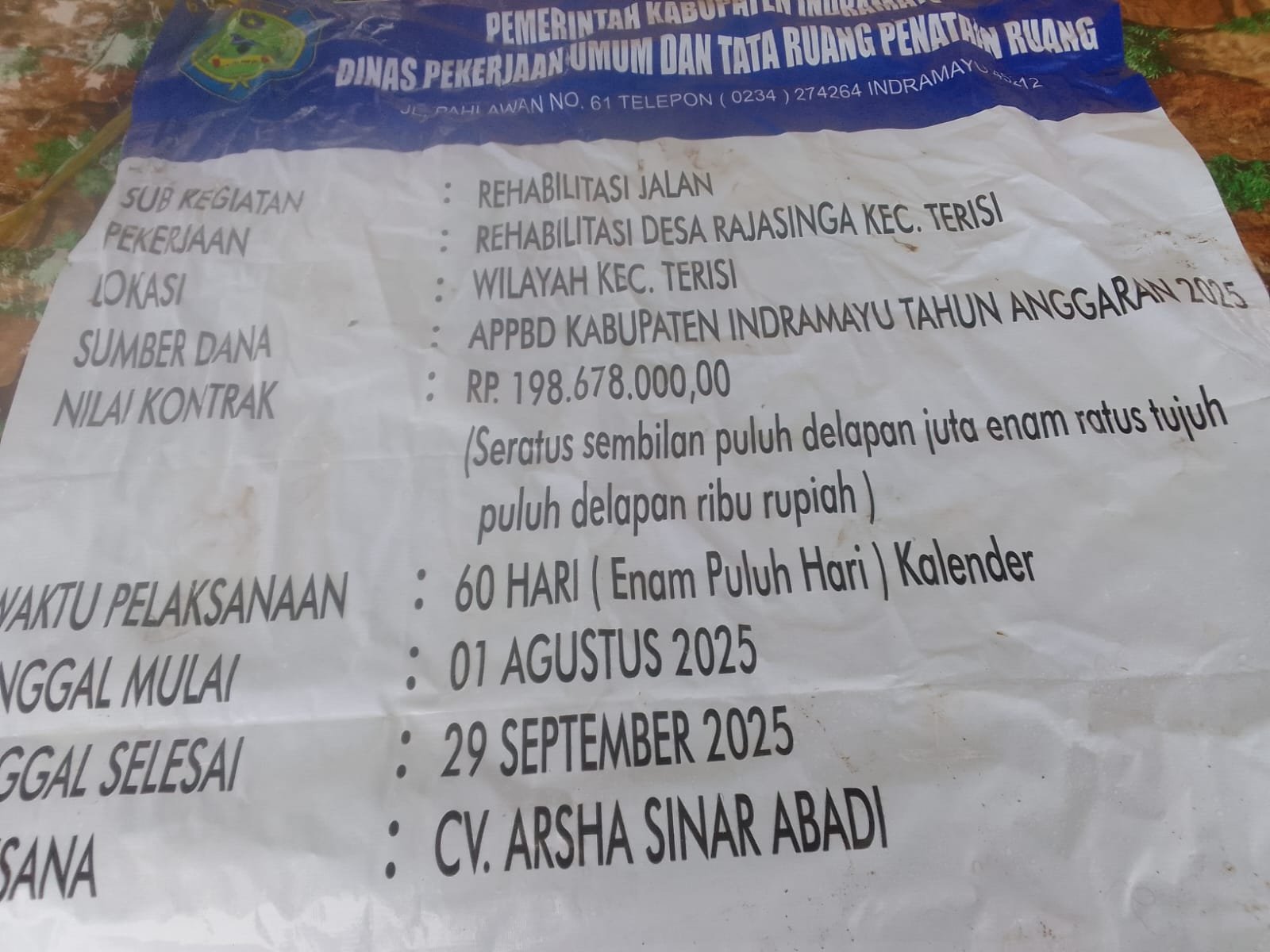Kegiatan rehabilitasi jalan beton tersebut terlihat CV.Arsha Sinar Abadi, yang sangat serius dalam pelaksanaan pekerjaan, yang mengacu pada Rencana Anggaran Biaya (RAB) pelaksanaan pekerjaan tersebut benar-benar sesuai harapan banyak Masyarakat, pekerjaan proyek jalan beton mendapatkan apresiasi dari warga masyarakat setempat.