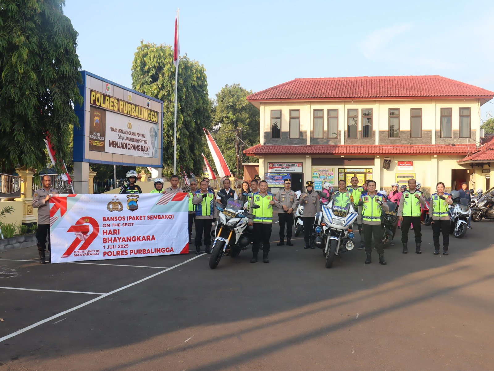Kapolres Purbalingga dalam sambutan menyampaikan bahwa hari ini dilaksanakan bakti sosial dalam rangka Hari Bhayangkara ke 79 tahun 2025. Kegiatan dilakukan dengan touring sepeda motor langsung menuju ke sasaran.