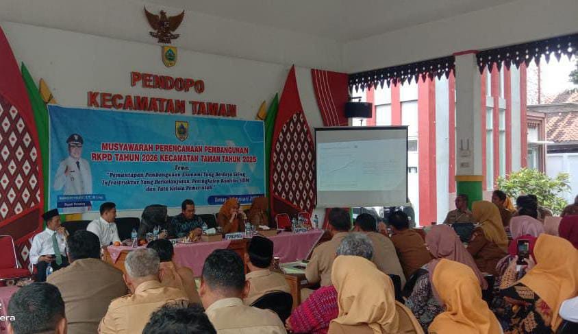 Menyelenggarakan acara ‘ Musyawarah Perencanaan Pembangunan RKPD Tahun 2026 Kecamatan Taman 2025 ‘ dengan tema ” Pemantapan Pembamgunan Ekonomi Yang Berdaya Saing , Infrastruktur Yang Berkelanjutan , Peningkatan Kwalitas SDM dan Tata Kelola Pemerintahan