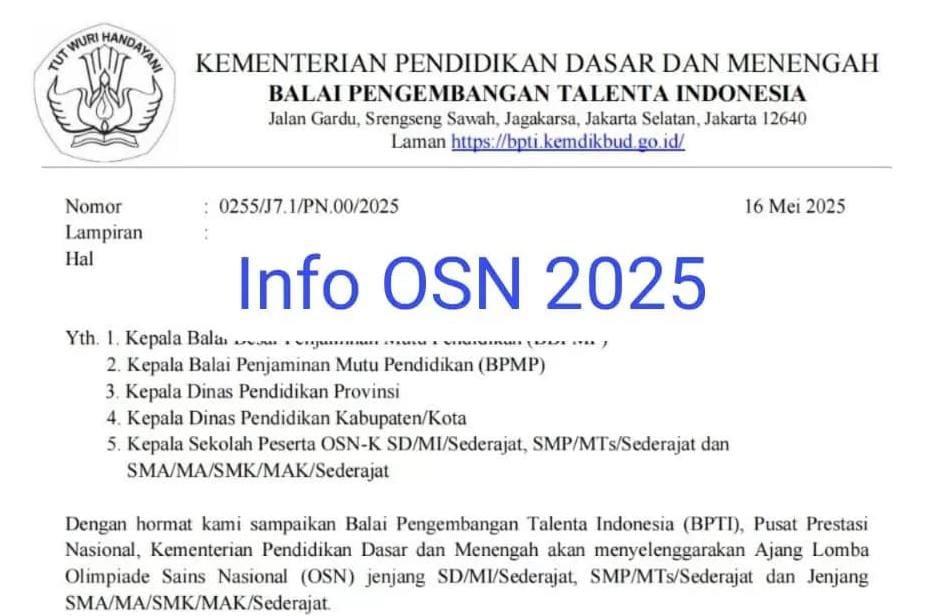 * Olimpiade Sains Nasional ( OSN ) yang rencananya dimulai bulan Juni 2025 juga memuat tentang jadwal dan tingkatan sekolah yang ikut serta ,