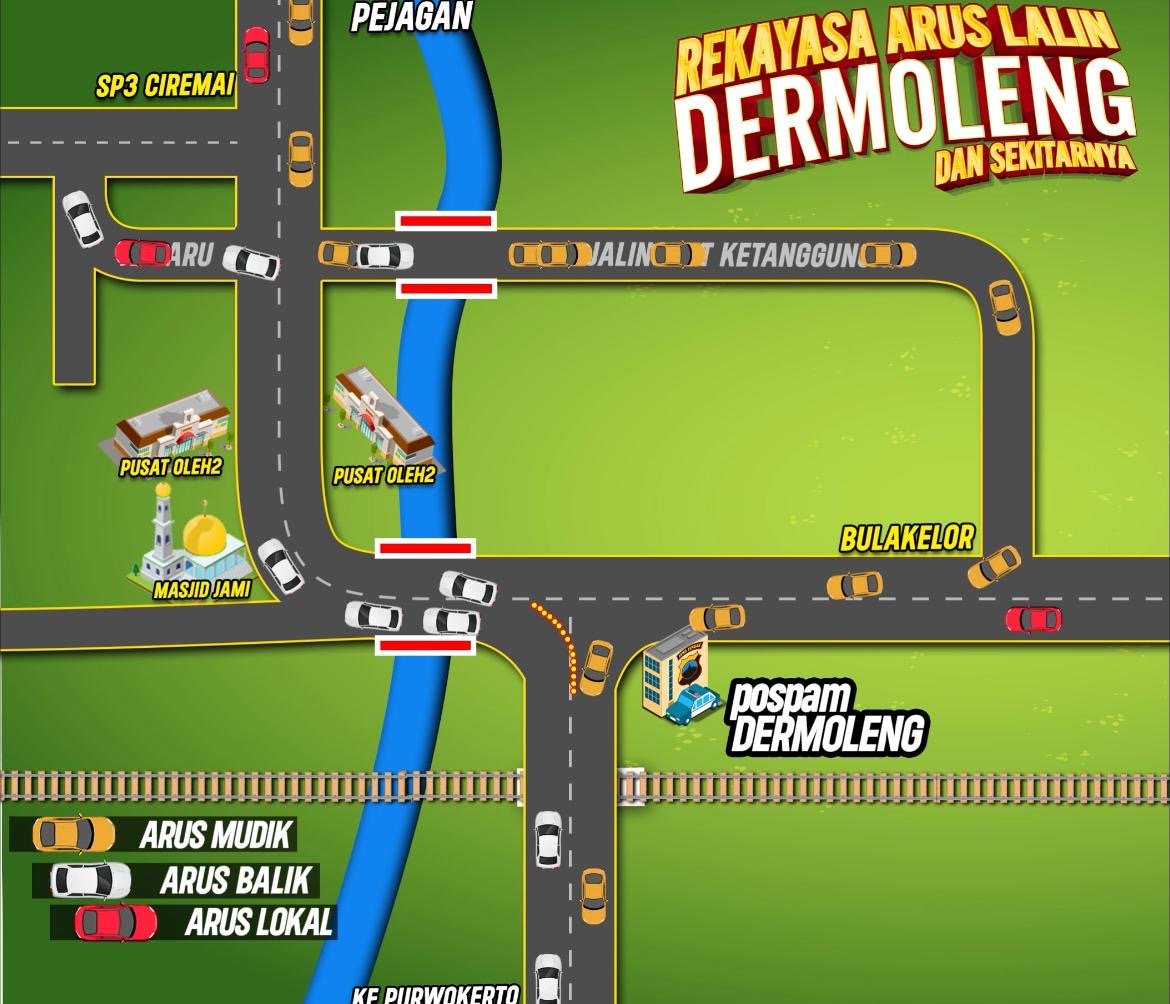 – Buat kendaraan dari arah Pejagan ke Purwokerto, bakal dialihin lewat jalur lingkar Ketanggungan, Simpang Bulakelor, Dermoleng, terus lanjut ke Purwokerto.