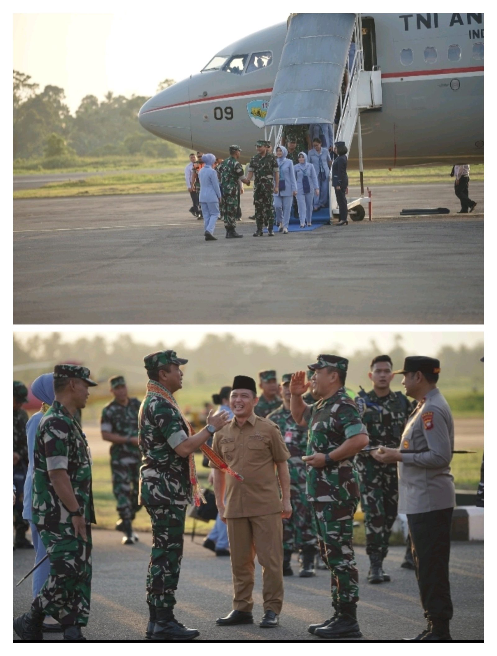 KUBU RAYA Poskota Online– Pangdam XII/Tanjungpura Mayjen TNI Jamallulael, S.Sos., M.Si., menyambut kedatangan Kepala Staf Angkatan Udara (Kasau) Marsekal TNI M. Tonny Harjono, S.E., M.M., saat tiba di Apron Lanud Supadio, Kubu Raya, Kalimantan Barat, Selasa (23/9/2025).