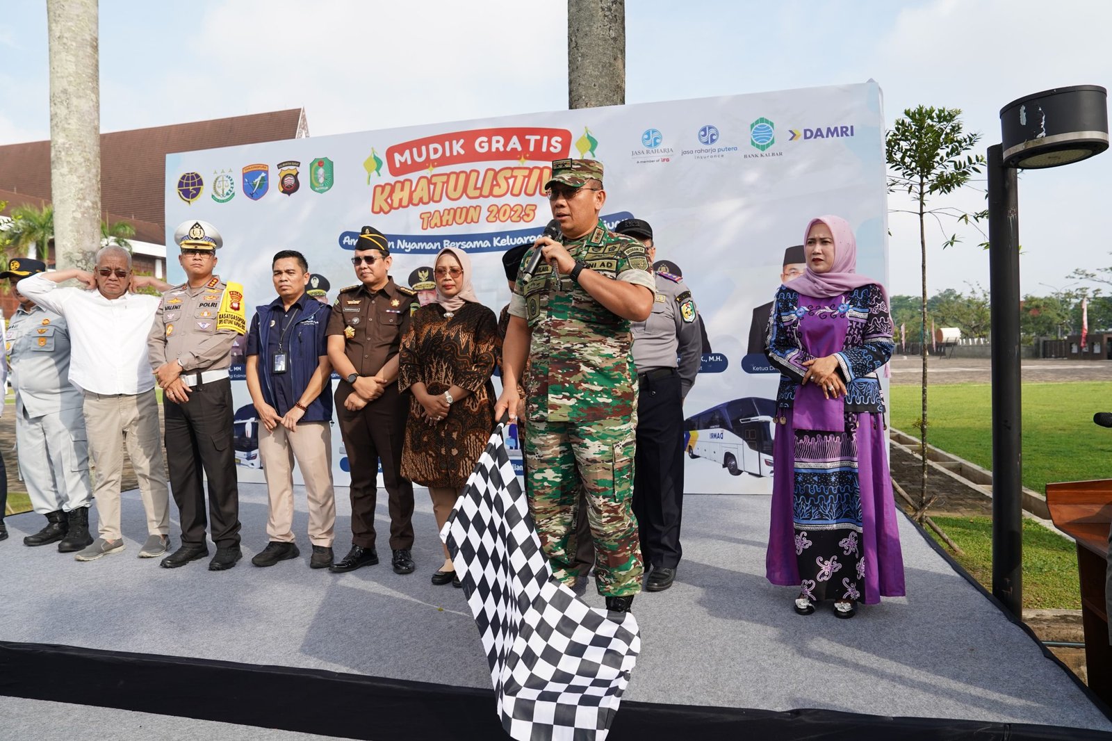 PONTIANAK Poskota Online – Pangdam XII/Tanjungpura Mayjen TNI Jamallulael, S.Sos., M.Si., bersama Gubernur Kalimantan Barat Ria Norsan melepas keberangkatan Mudik Gratis Khatulistiwa 2025. Bertempat di Halaman Kantor Gubernur Provinsi Kalimantan Barat, Jumat (28/3/2025).