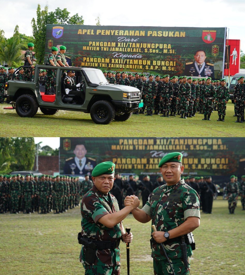 Menindaklanjuti hal tersebut, pada Rabu (10/9/2025) Pangdam XII/Tpr Mayjen TNI Jamallulael, S.Sos., M.Si., menyerahkan secara resmi Pasukan Kodam XII/Tpr kepada Kodam XXII/TB. Apel penyerahan pasukan berlangsung di Lapangan Bola, Makodam XXII/TB, Kota Palangka Raya.
