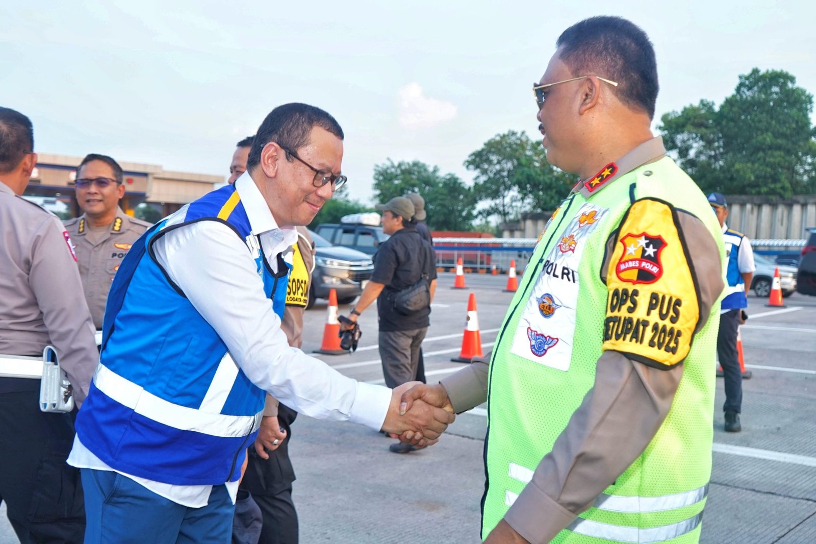 jongjava.co –  Terus upayakan kelancaran arus balik libur Hari Raya Idulfitri 1446 H / Lebaran 2025, Kepala Korps Lalu Lintas Kepolisian Negara Republik Indonesia (Kakorlantas Polri) Agus Suryo lakukan tinjauan ke KM 70 Gerbang Tol (GT) Cikampek Utama Jalan Tol Jakarta-Cikampek, Senin (07/04). Kunjungan Kakorlantas ini didampingi oleh Direktorat Penegakan Hukum Raden Slamet Santoso, Dirlantas Polda Jawa Barat Dodi Darjanto dan dihadiri oleh Direktur Utama PT Jasamarga Transjawa Tol (JTT) Rudi Kurniadi, Direktur Keuangan PT JTT Siti Sarah, Direktur Utama PT Jasamarga Tollroad Operator (JMTO) Yoga Tri Anggoro, para Vice President PT JTT, Senior Manager Representative Office 1 PT JTT Jalan Tol Jakarta-Cikampek beserta jajaran.