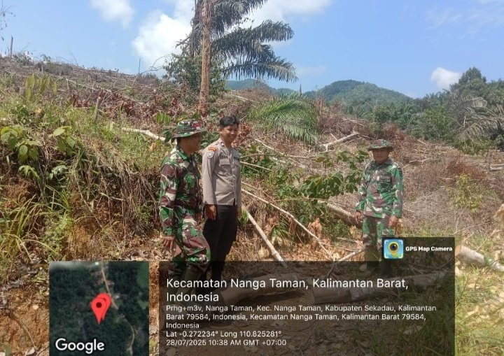 SEKADAU Poskota Online– Untuk menjaga keamanan lingkungan dari kebakaran hutan dan lahan (karhutla) dan pembalakan liar, Babinsa sertu ruslan u. Kecamatan Nanga Taman beserta anggota Polsek nanga taman melakukan patroli.Senin (28/07/2025).