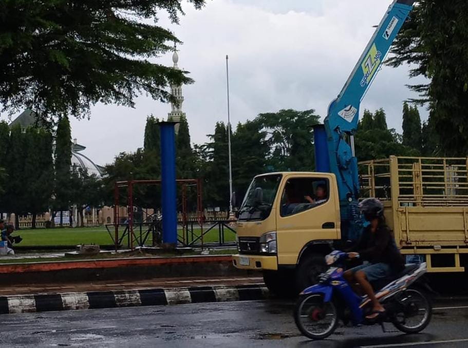 Pembangunan Videotron di Alun – Alun Purbalingga Untuk Nobar Timnas Di Percepat